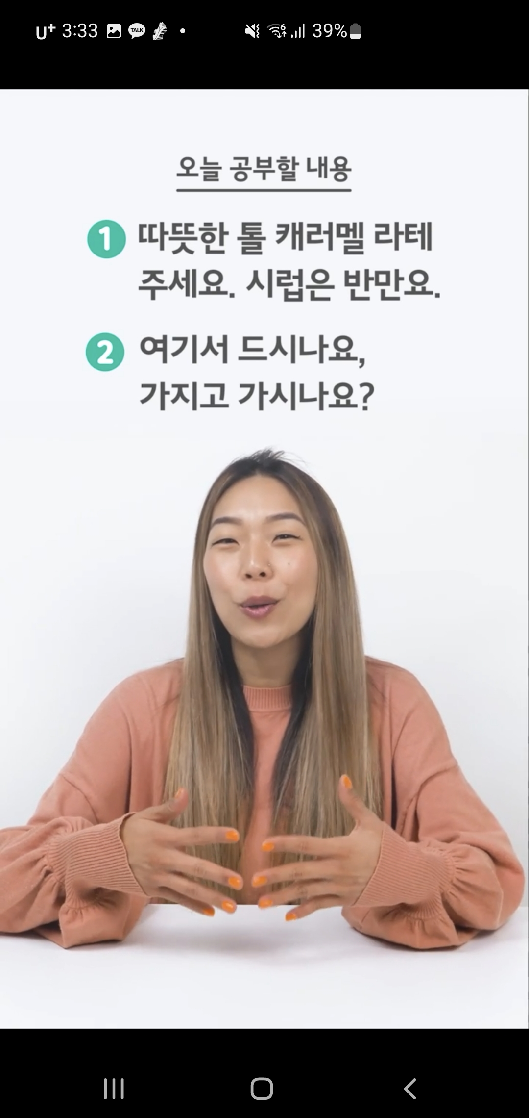 예를 들어, 어제 본 강의 주제는 카페 주문 영어였어요.