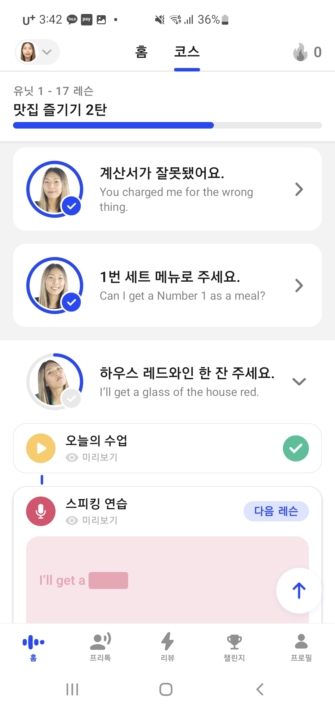 특히 저처럼 영어 문장 작문이 잘 안되는 사람들은 프리미엄 상품으로 공부하고 AI튜터와 영어 프리토킹보다는 밑에 사진처럼 강의를 더 많이 듣게 되더라고요 ㅎ