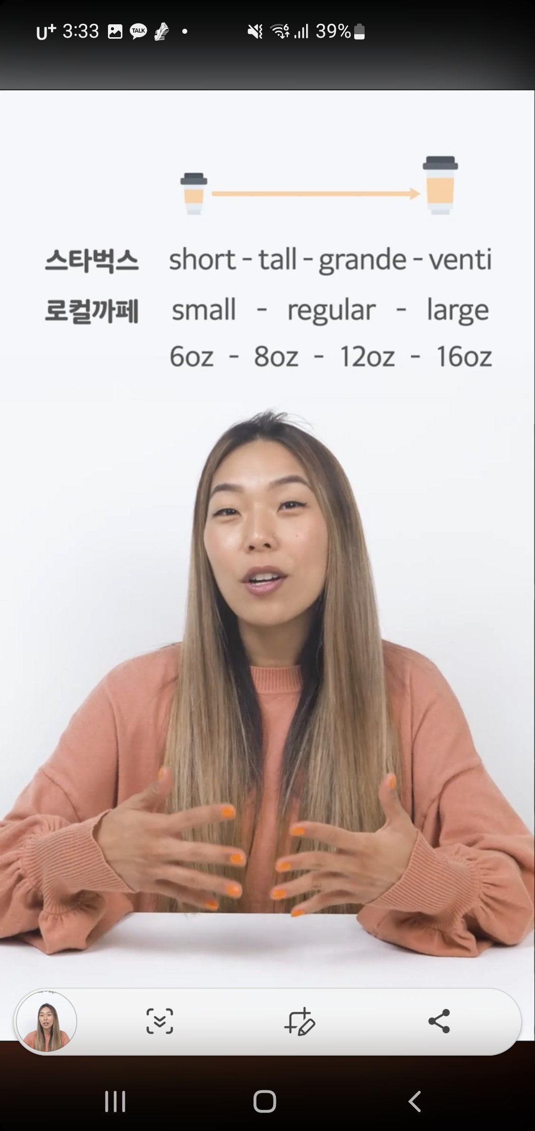 ▶ 스타벅스: Short - Tall - Grande - Venti