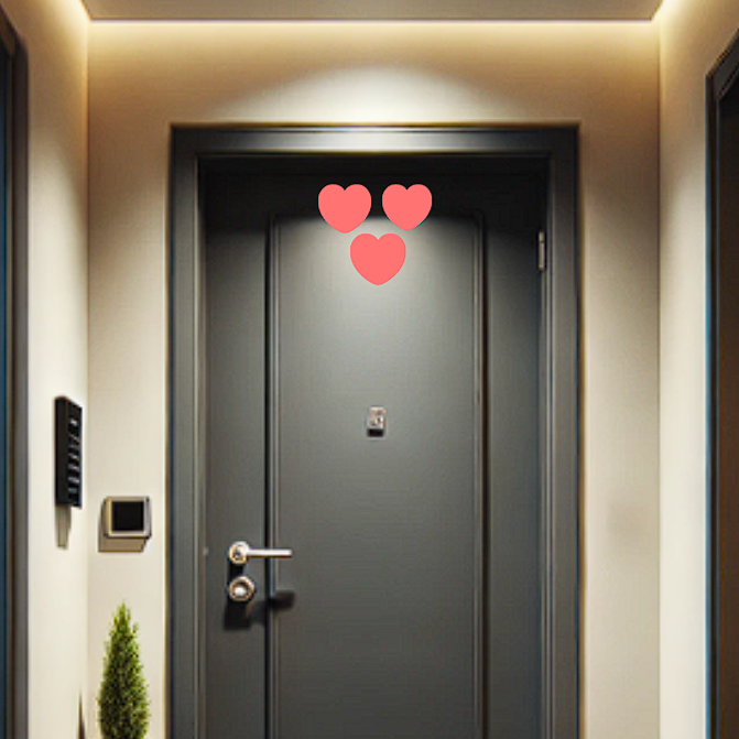 현관문은 집으로 들어오는 기운이 흐르는 중요한 입구입니다. 하트 스티커를 현관문 중앙 상단에 3개 붙이면, 재물운이 문을 통해 들어오면서 머무르게 되는 효과가 있다고 합니다.