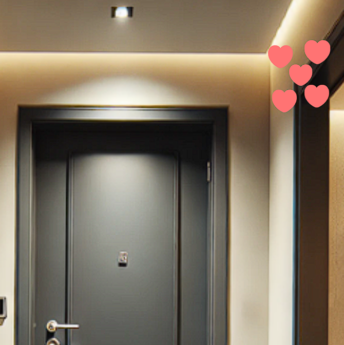 집 내부에서도 기운이 원활하게 흐를 수 있도록, 현관에서 안쪽으로 2m 정도 들어온 위치에 하트 스티커를 7개 부착하면 좋습니다.